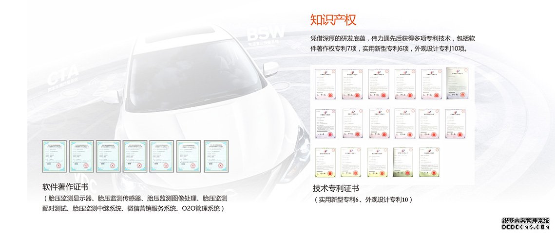 2005年起,偉力通專注于研發汽車輪胎壓力監測系統,憑借深厚的研發底蘊,公司先后擁有多項專利技術,包括一次性封裝技術,激光定位技術,實用新型專利,外觀設計專利等,同時公司產品均通過世標ISO9001:2000質量管理體系認證及美國FCC、NCC、歐盟CE、國家質檢中心等國內外權威機構的檢驗。